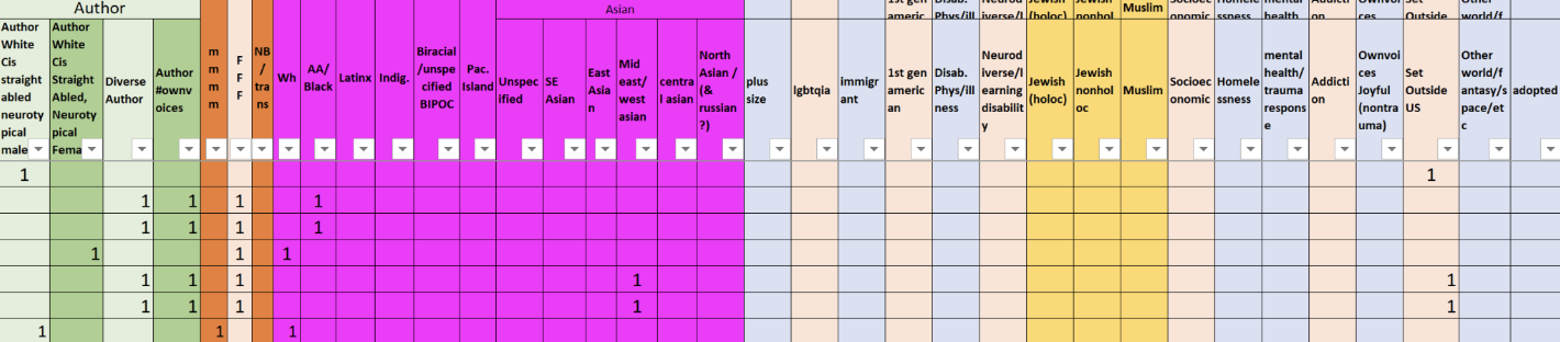 Our goals were discrete; increase the representation of works written by authors other than cis white males. Rather than approaching “diversity” in aggregate, we were highly specific in what we meant by using terms, such as: “BIPOC”, “majority world”, where specifically in Asia, of Africa, the book referenced. Our diversity markers also have room for intersexuality (social identities, such as: race, gender, sexuality, class, marital status, and age) and overlap in dynamic ways. This captures the complexity of the human experience and provides an expanded, more accurate, three-dimensional view of inclusion.